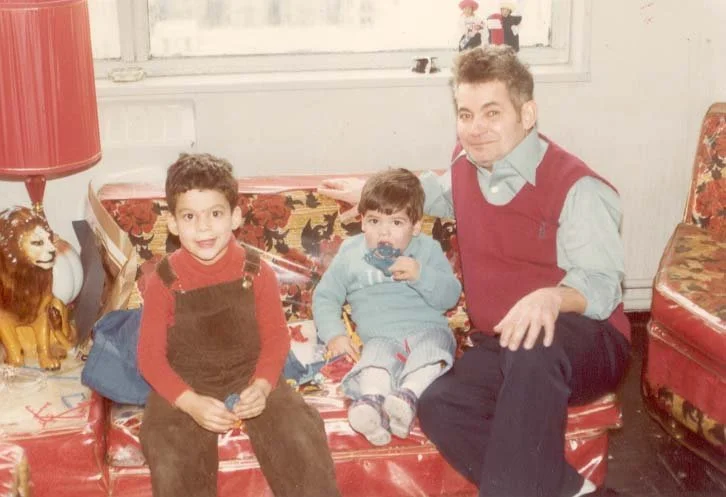 Joe, his brother Peter, and their father, Pablo, celebrating Peterʼs fifth birthday. 307 East 105th Street, 1976. © NuevaYorkinos / Joe Pabón.